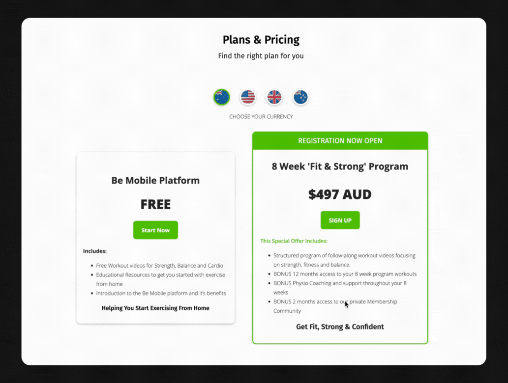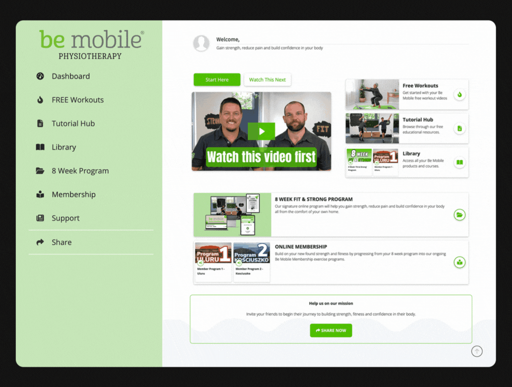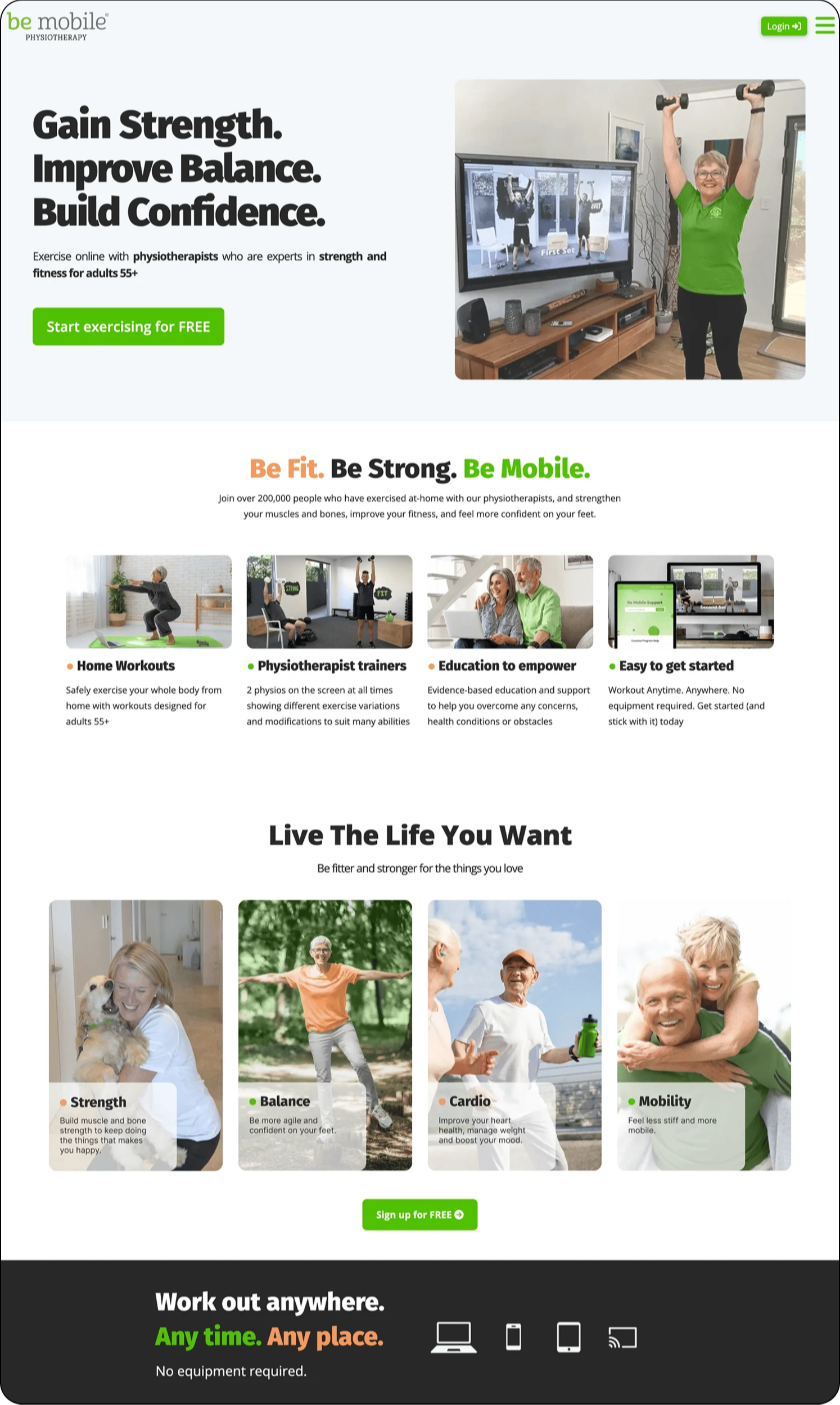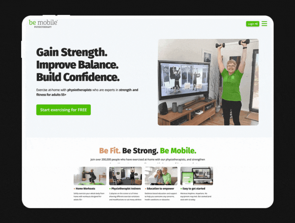 Bemobile Physiotherapy - The Kajabi Fitness Website for the over 55s