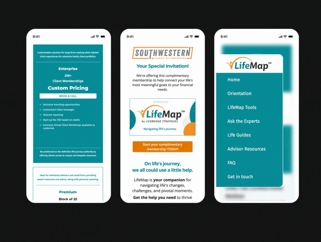 The LifeMap team wanted every advisor to have their own branded registration page for clients, a solution that’s fluid, scalable, and easy to manage from the backend. We delivered a fully designed Launchpad landing page template, paired with a free signup checkout, that can be quickly duplicated and customised for each advisor.